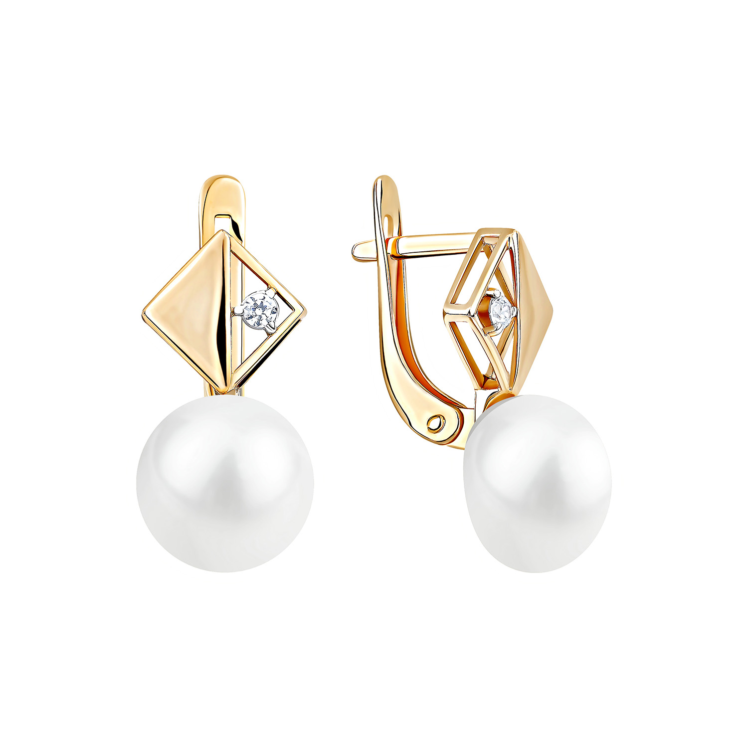 [NAME] => Серьги из красного золота с жемчугом и фианитами