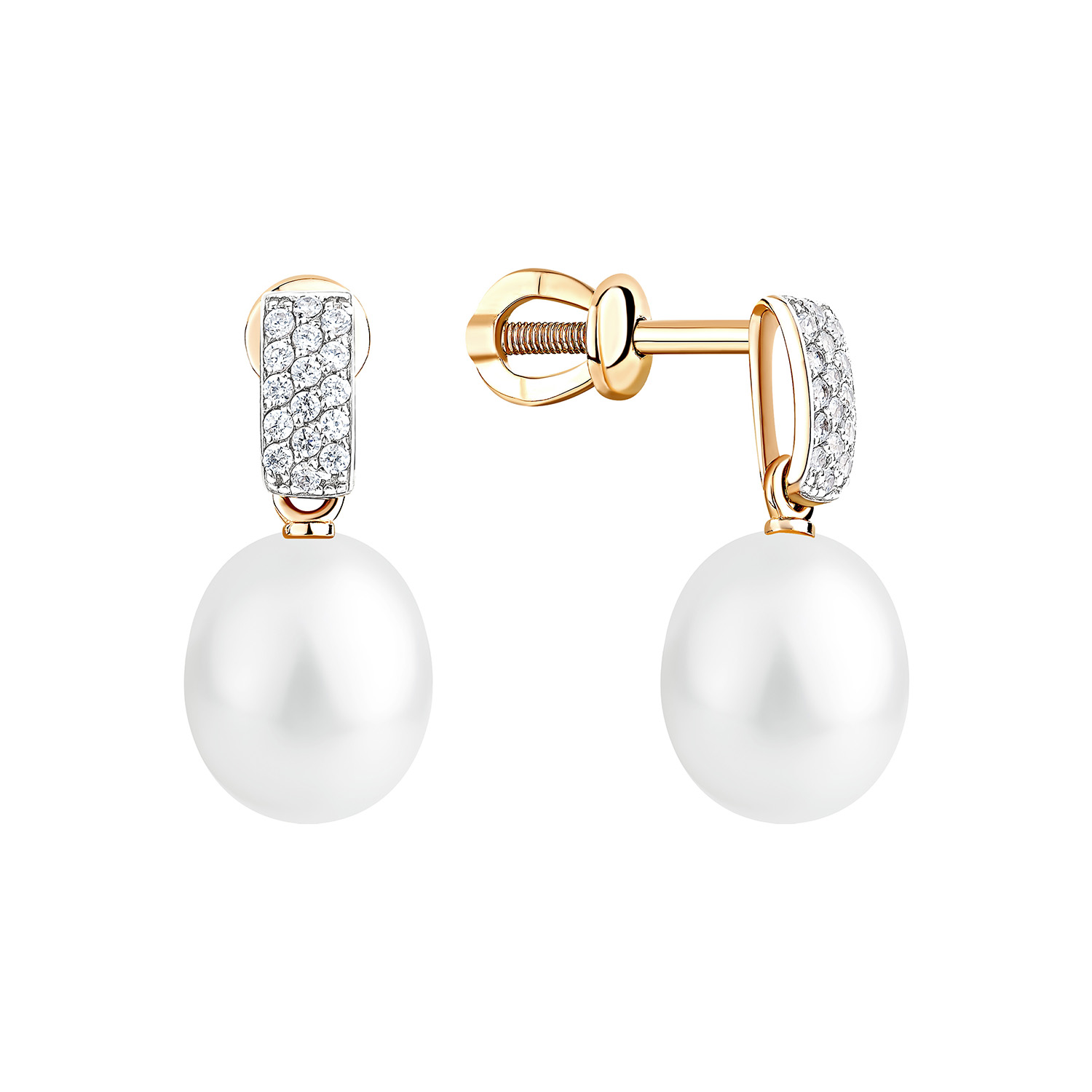 Серьги из красного золота с жемчугом и фианитами