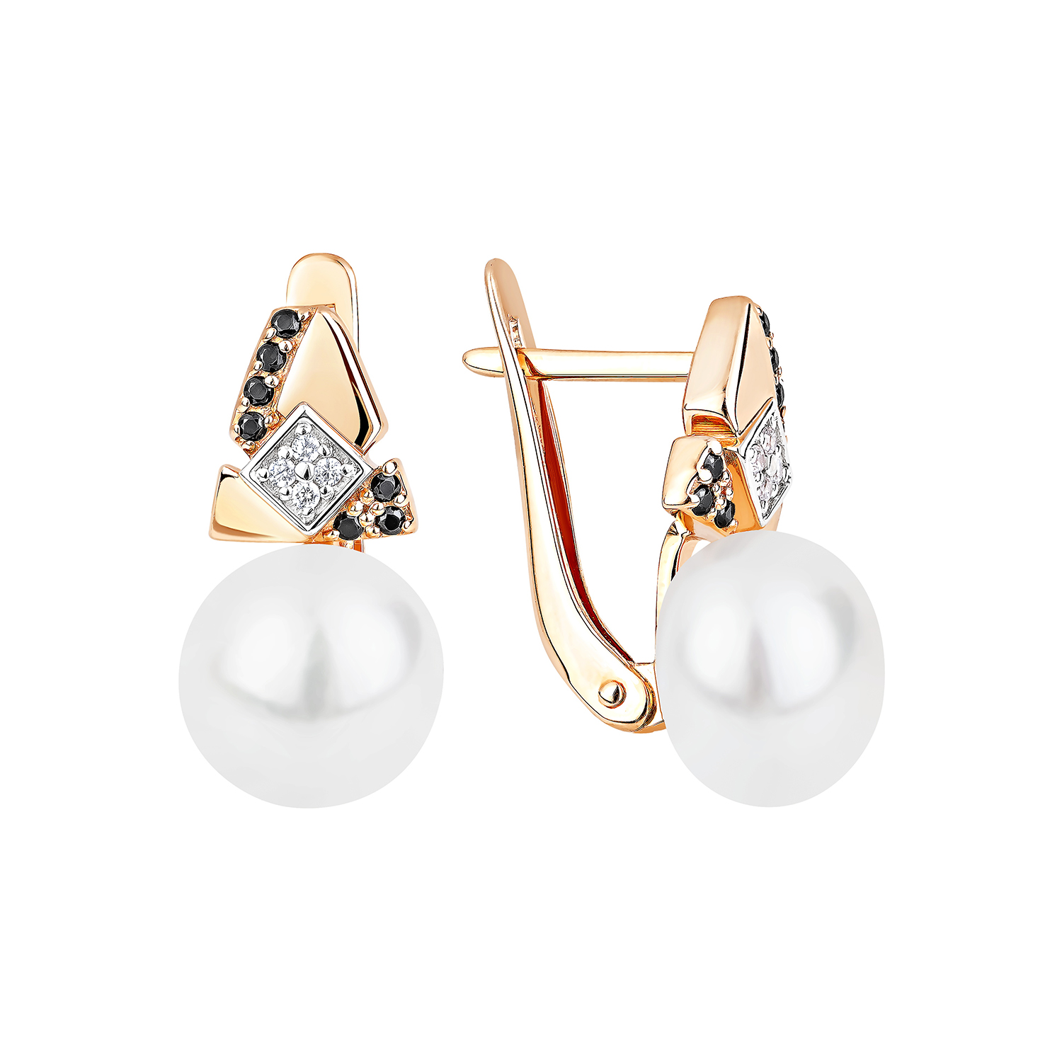 [NAME] => Серьги из красного золота с жемчугом и фианитами