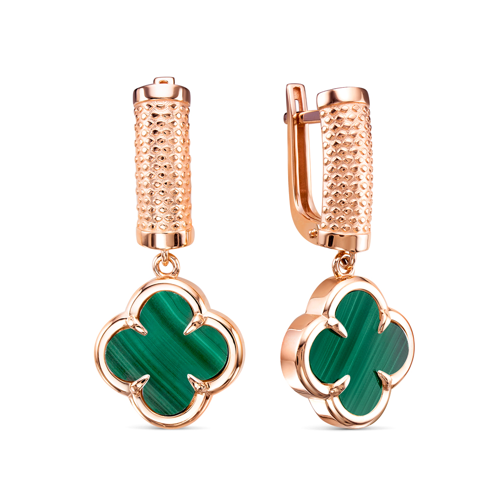 Серьги из красного золота с малахитом