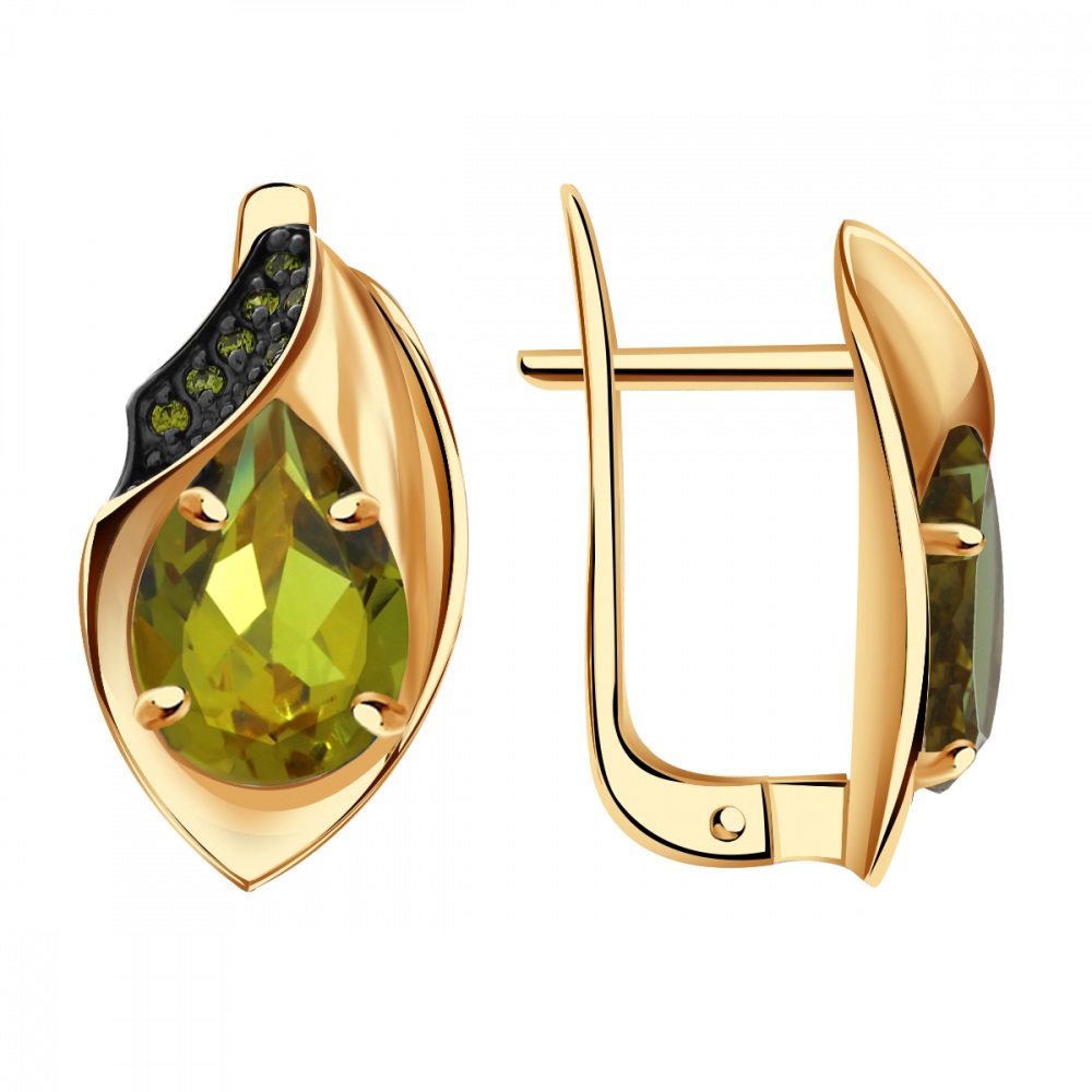 Серьги из красного золота с султанитом и фианитами