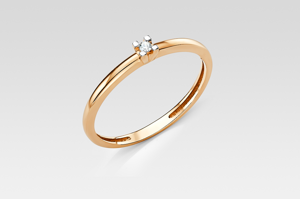 Кольцо помолвочное из красного золота с бриллиантами