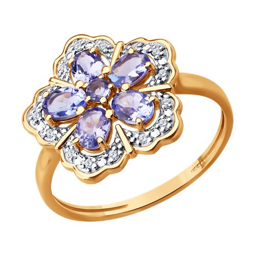 Кольцо из красного золота с танзанитом и бриллиантами 144728