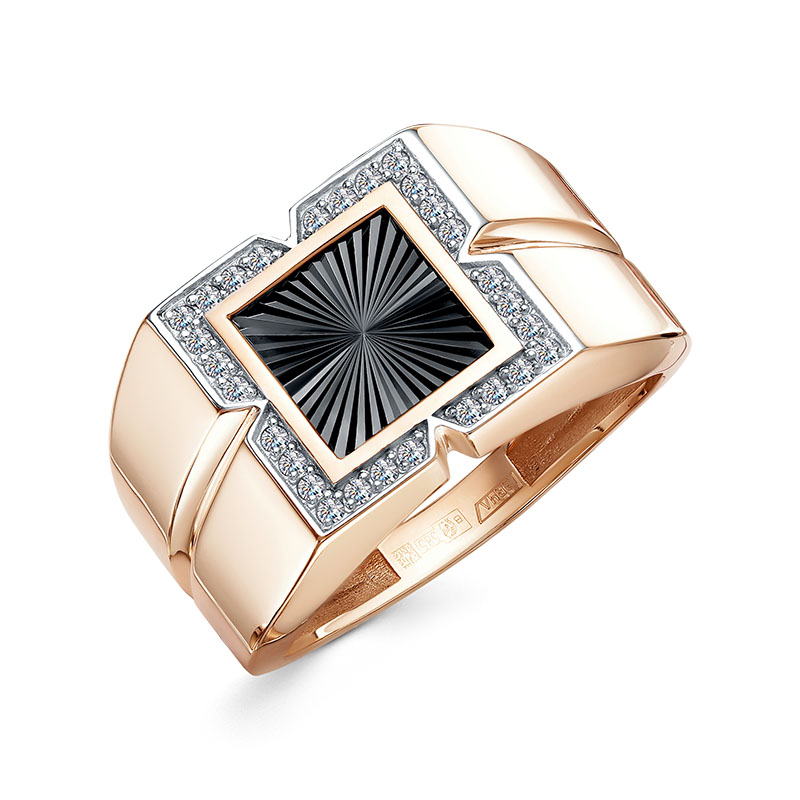 Мужская печатка из красного золота с фианитами 145338