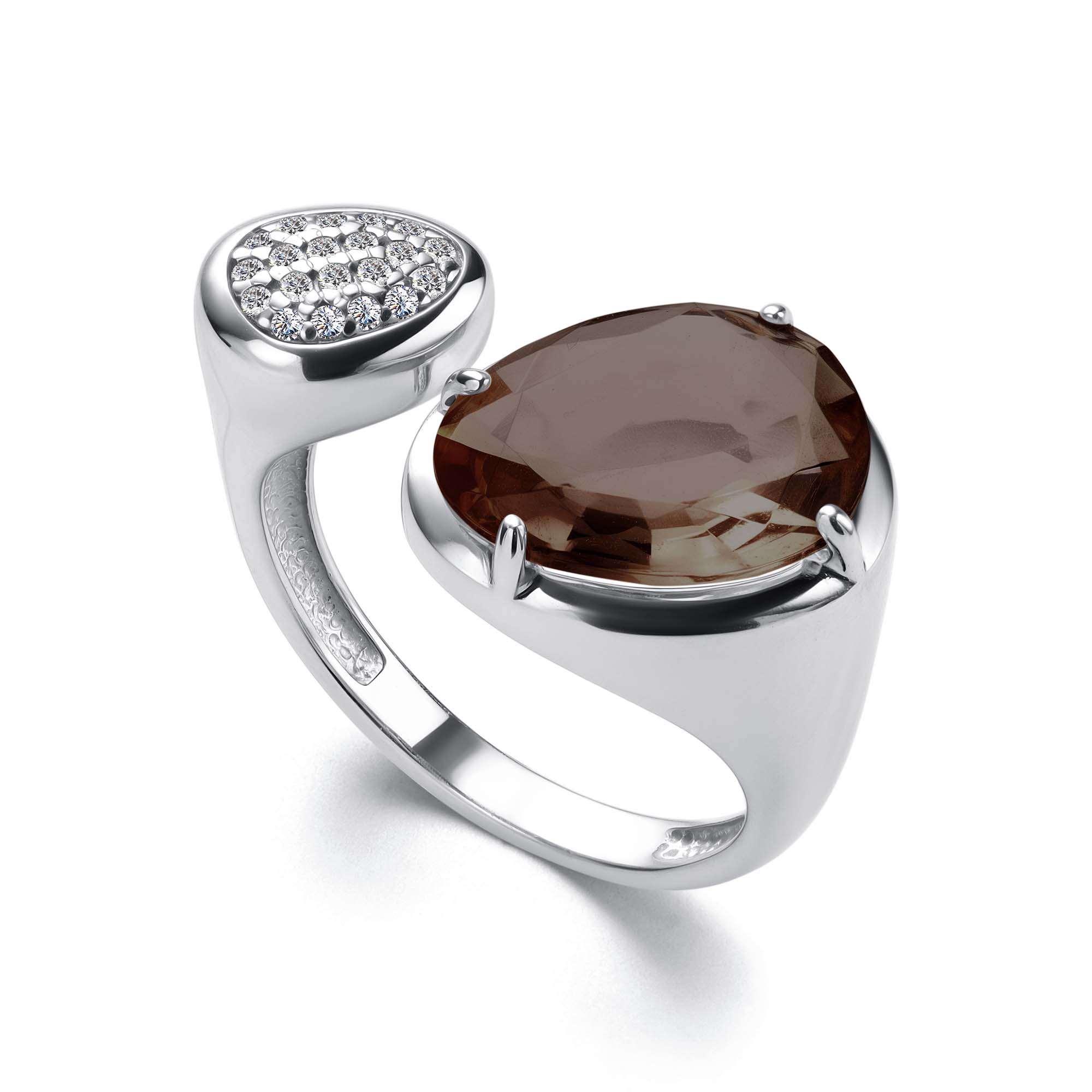 Кольцо из серебра с раух-топазом и фианитами