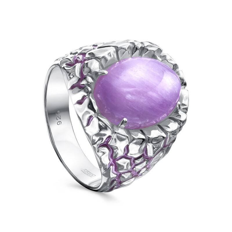 Кольцо из серебра с кунцитом и фианитами