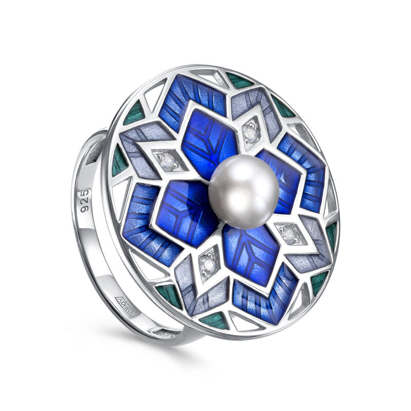 Кольцо из серебра с жемчугом и фианитами