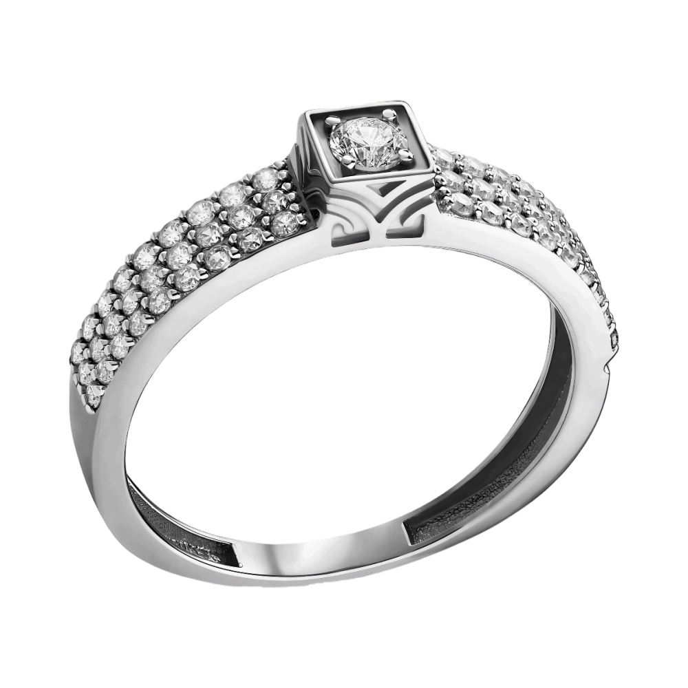 Кольцо из белого золота с фианитами