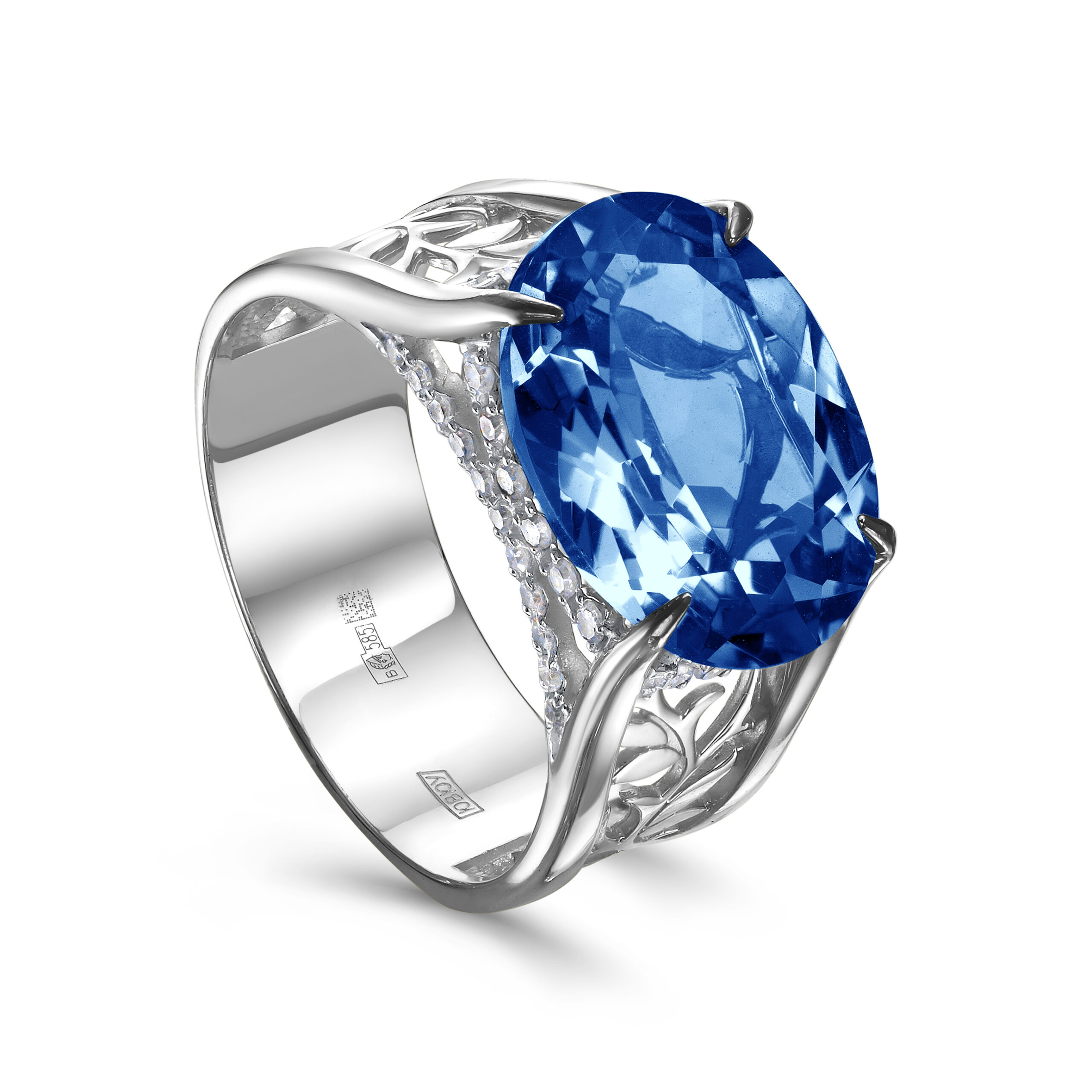 Кольцо из белого золота с лондон топазом и бриллиантами 147057