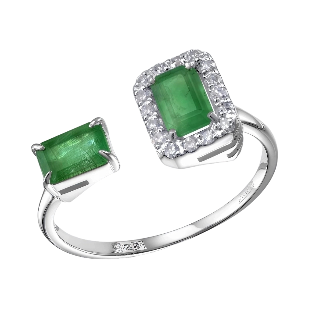 Кольцо из белого золота с изумрудами и бриллиантами 147058
