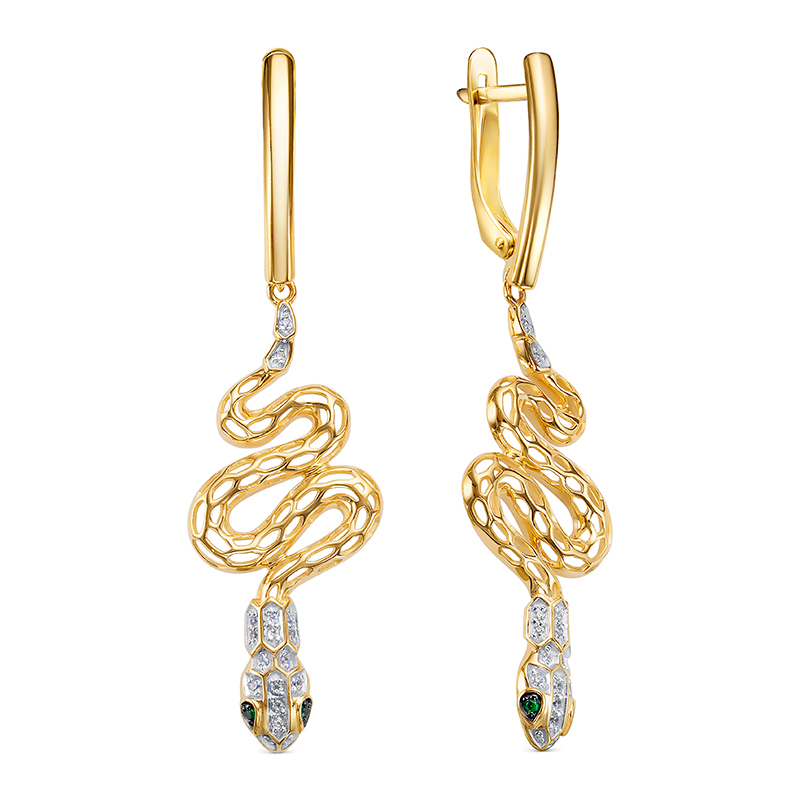 Серьги из желтого золота с фианитами