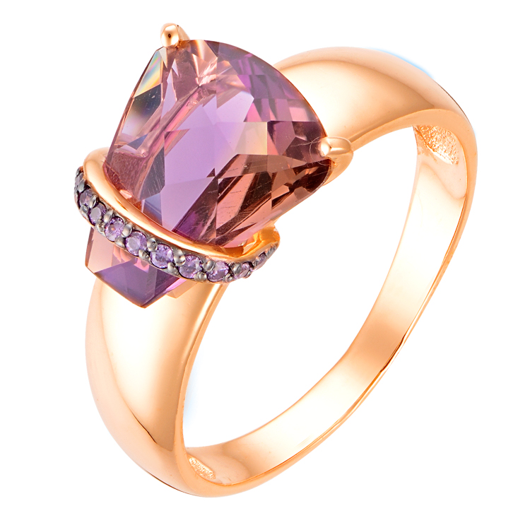 Кольцо из красного золота с аметистом и фианитами