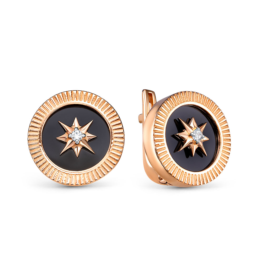 [NAME] => Серьги из красного золота с фианитами и ониксом