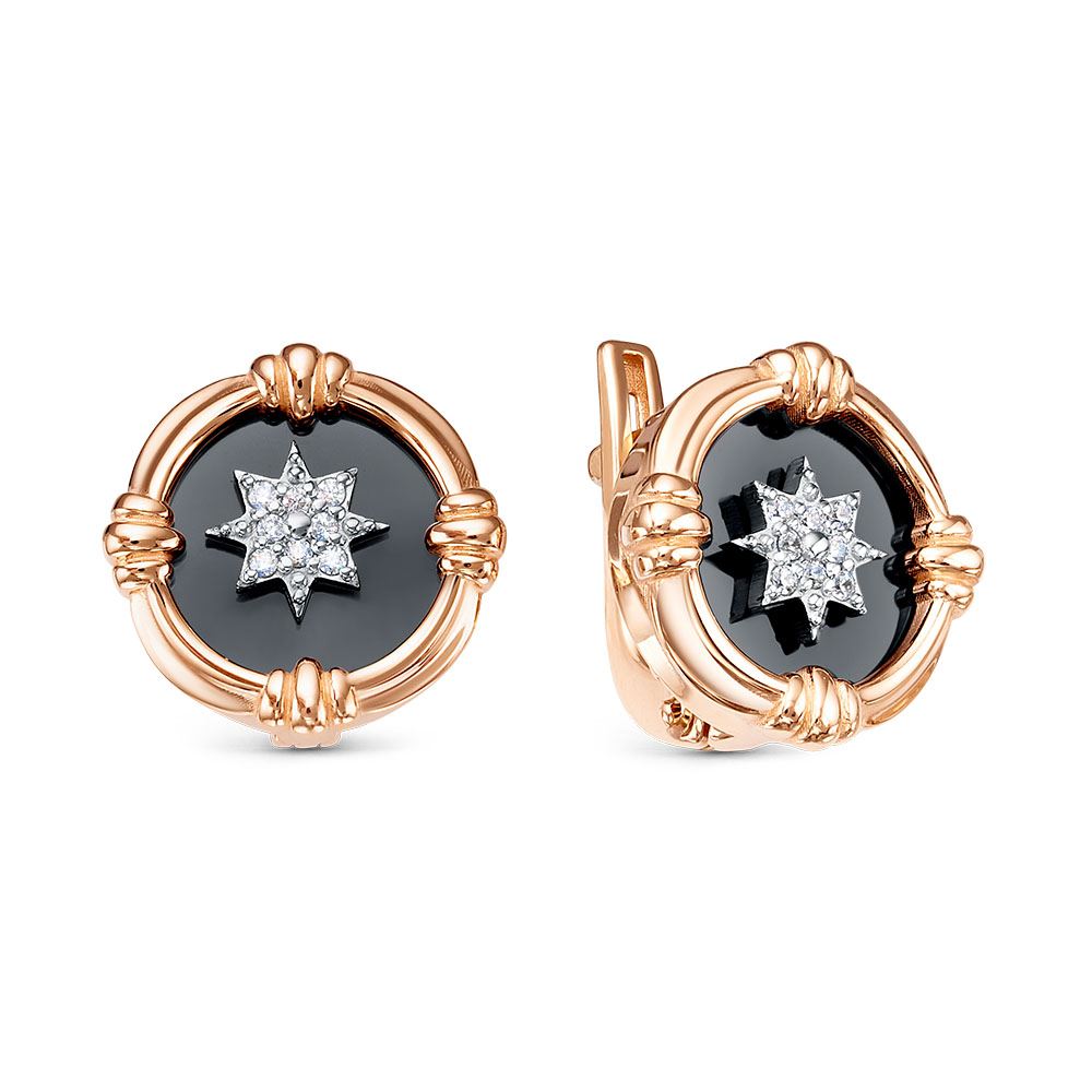 Серьги из красного золота с фианитами и ониксом 147647