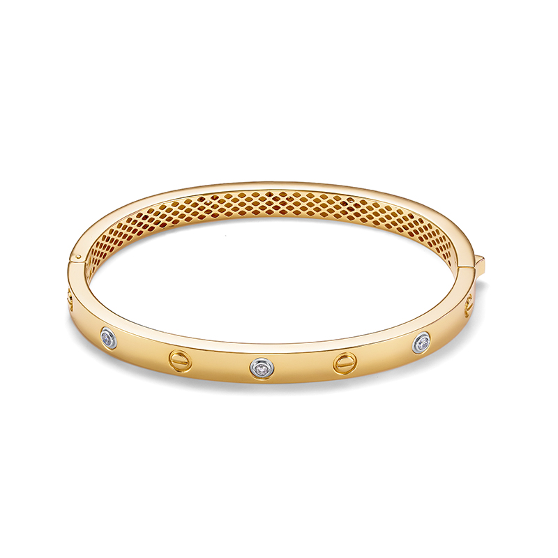 Браслет жесткий из желтого золота с фианитами