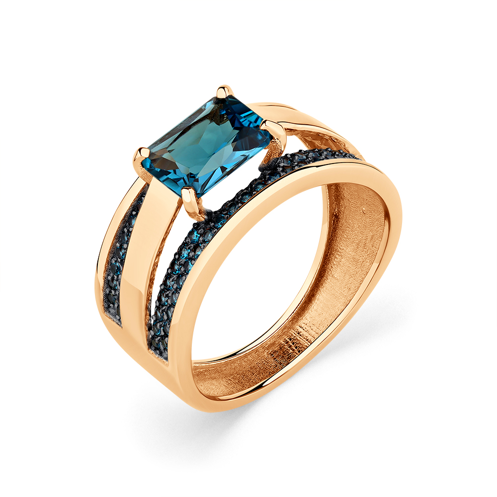 Кольцо из красного золота с лондон топазом и фианитами 149333