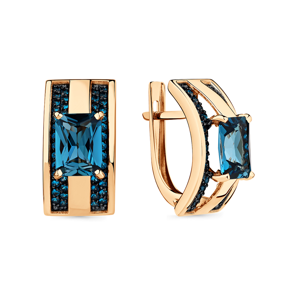 Серьги из красного золота с лондон топазом и фианитами 149348