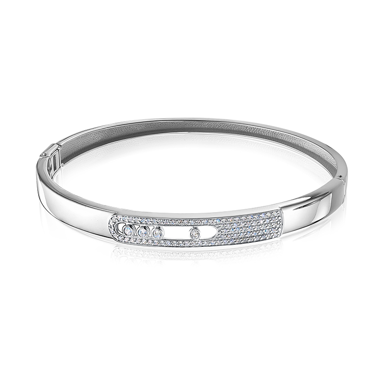 Браслет жесткий из белого золота с фианитами