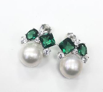 Серьги из серебра с жемчугом и цирконами