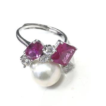 Кольцо из серебра со жемчугом и цирконами