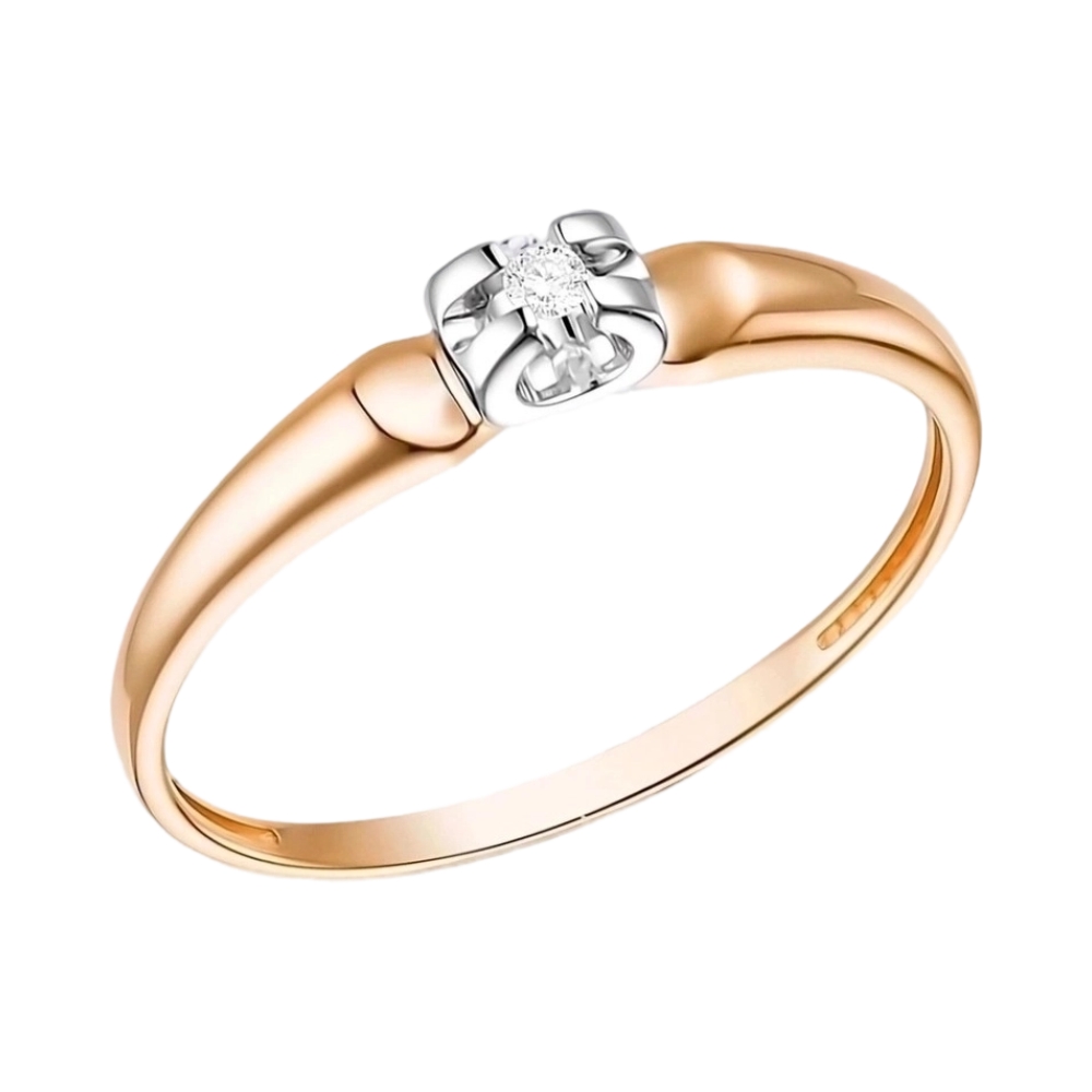 Кольцо помолвочное из красного золота с бриллиантами