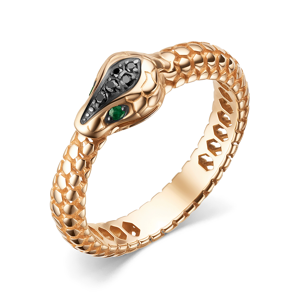 Кольцо из красного золота с изумрудом и бриллиантами 151200