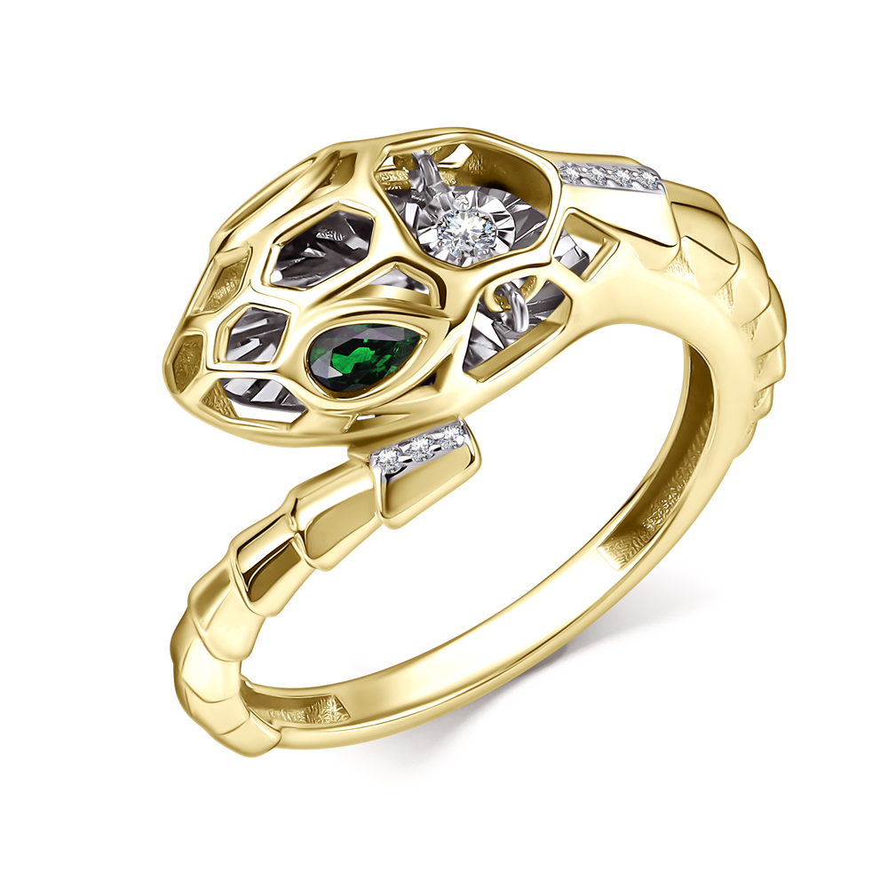 Кольцо из желтого золота с изумрудами и бриллиантами 151362