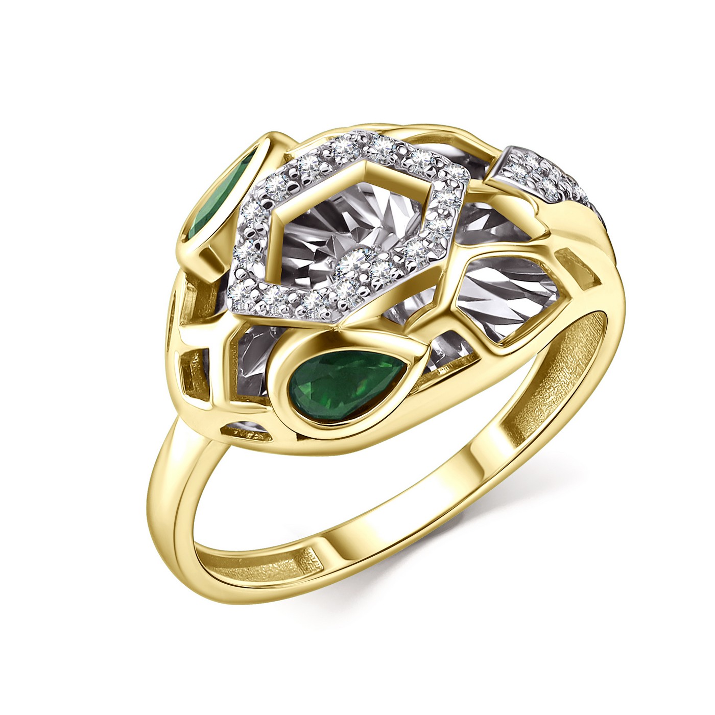 Кольцо из желтого золота с изумрудами и бриллиантами 151363