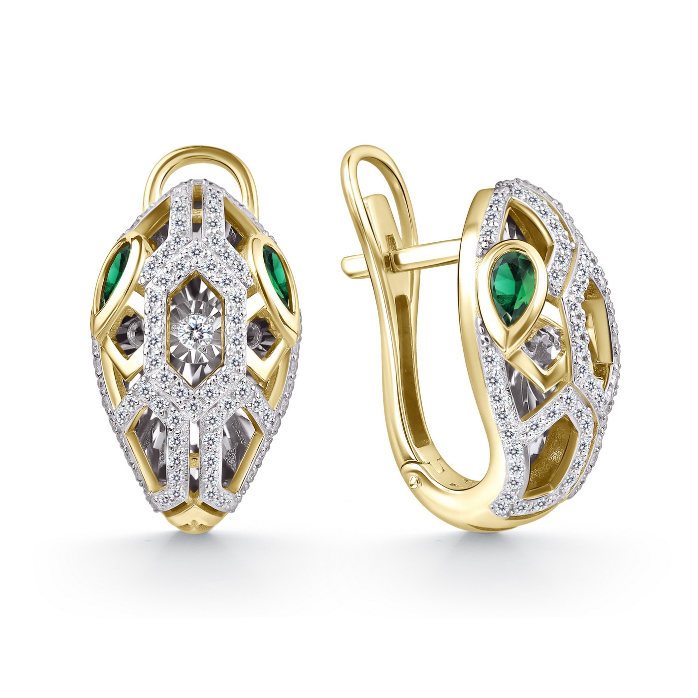 Серьги из желтого золота с изумрудами и бриллиантами 151368