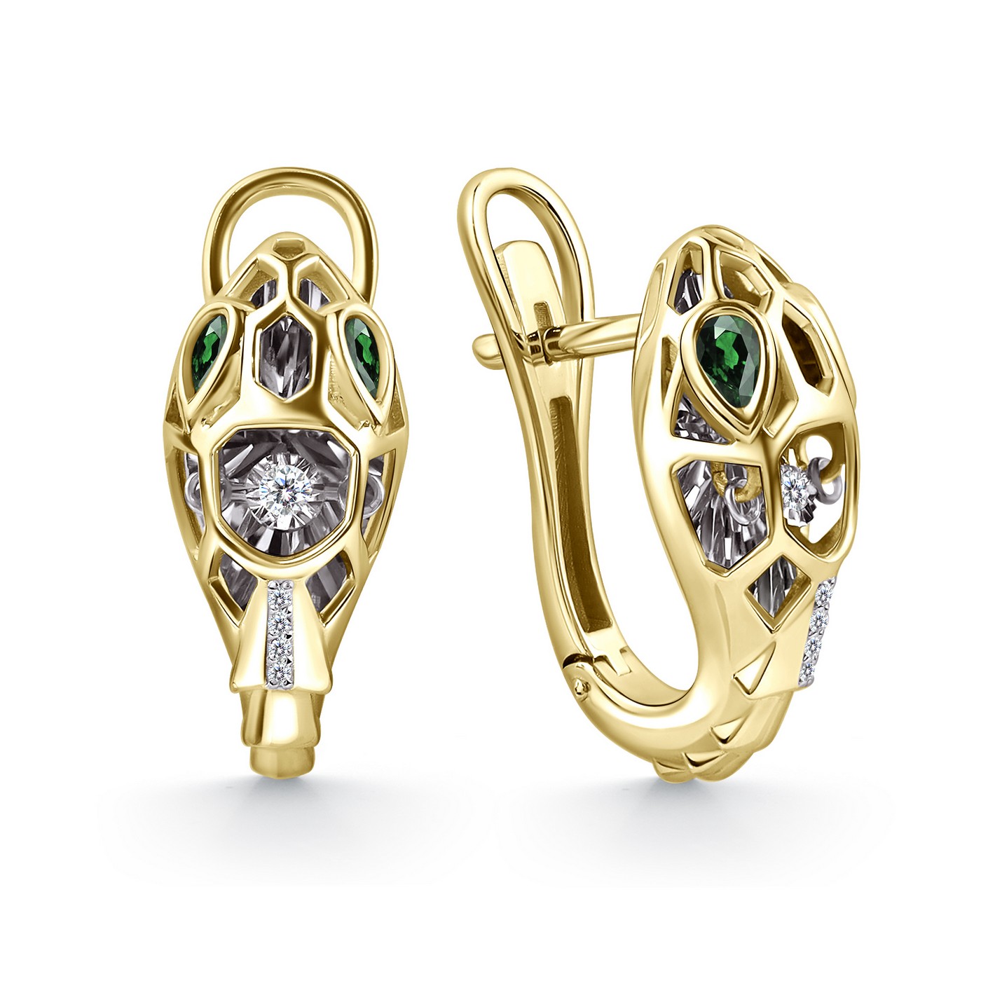Серьги из желтого золота с изумрудами и бриллиантами