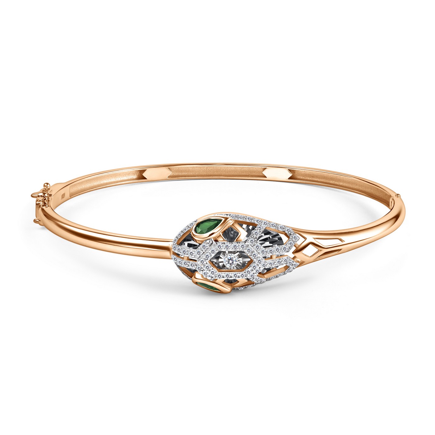 Браслет жесткий из красного золота с изумрудами и бриллиантами 151374