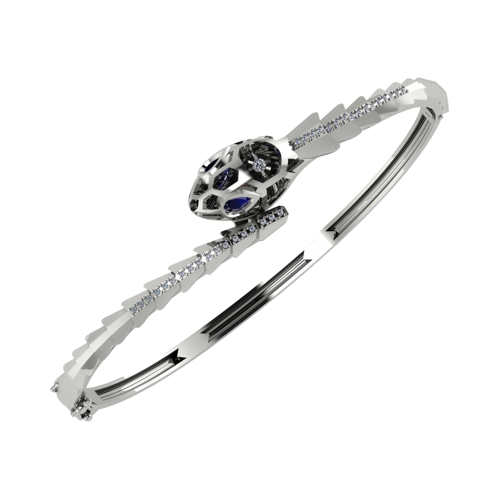 Браслет жесткий из белого золота с сапфиром и бриллиантами