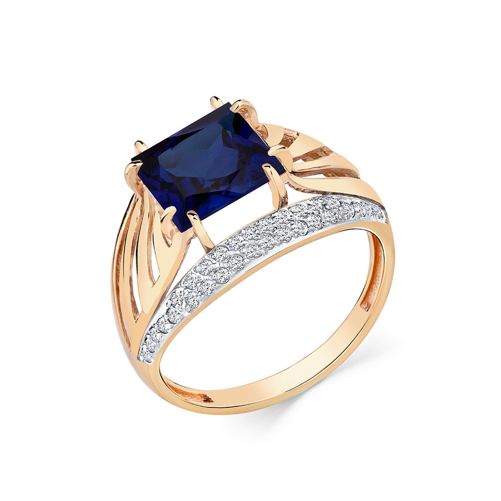 Кольцо из красного золота с сапфиром синтетическим и фианитами 151663