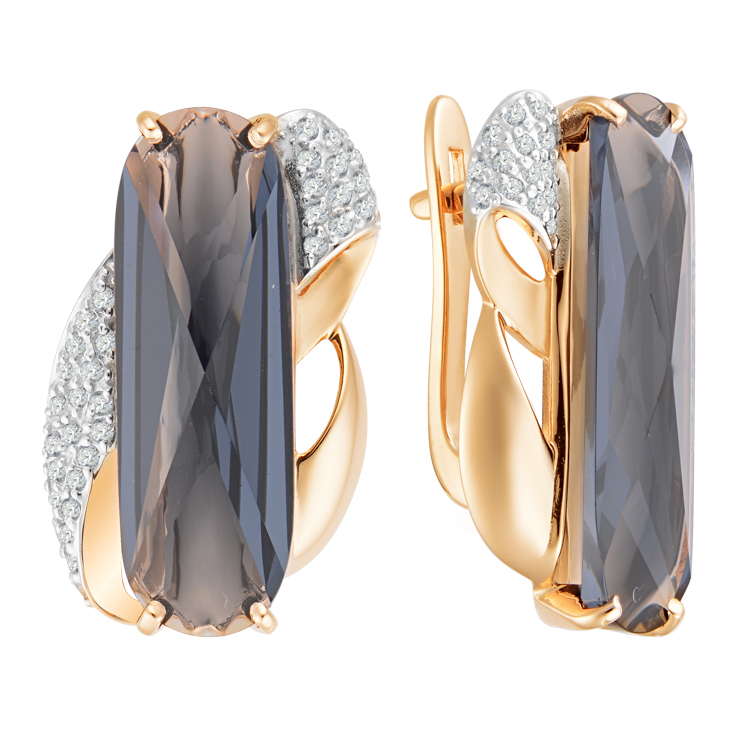 Серьги из красного золота с ситаллом и фианитами