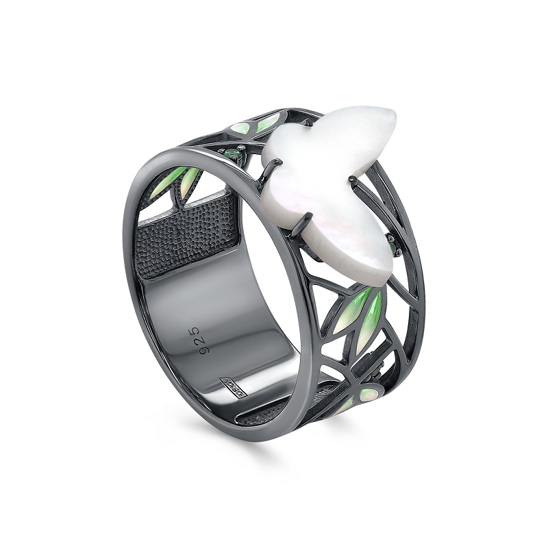 [NAME] => Кольцо из серебра с перламутром и фианитами