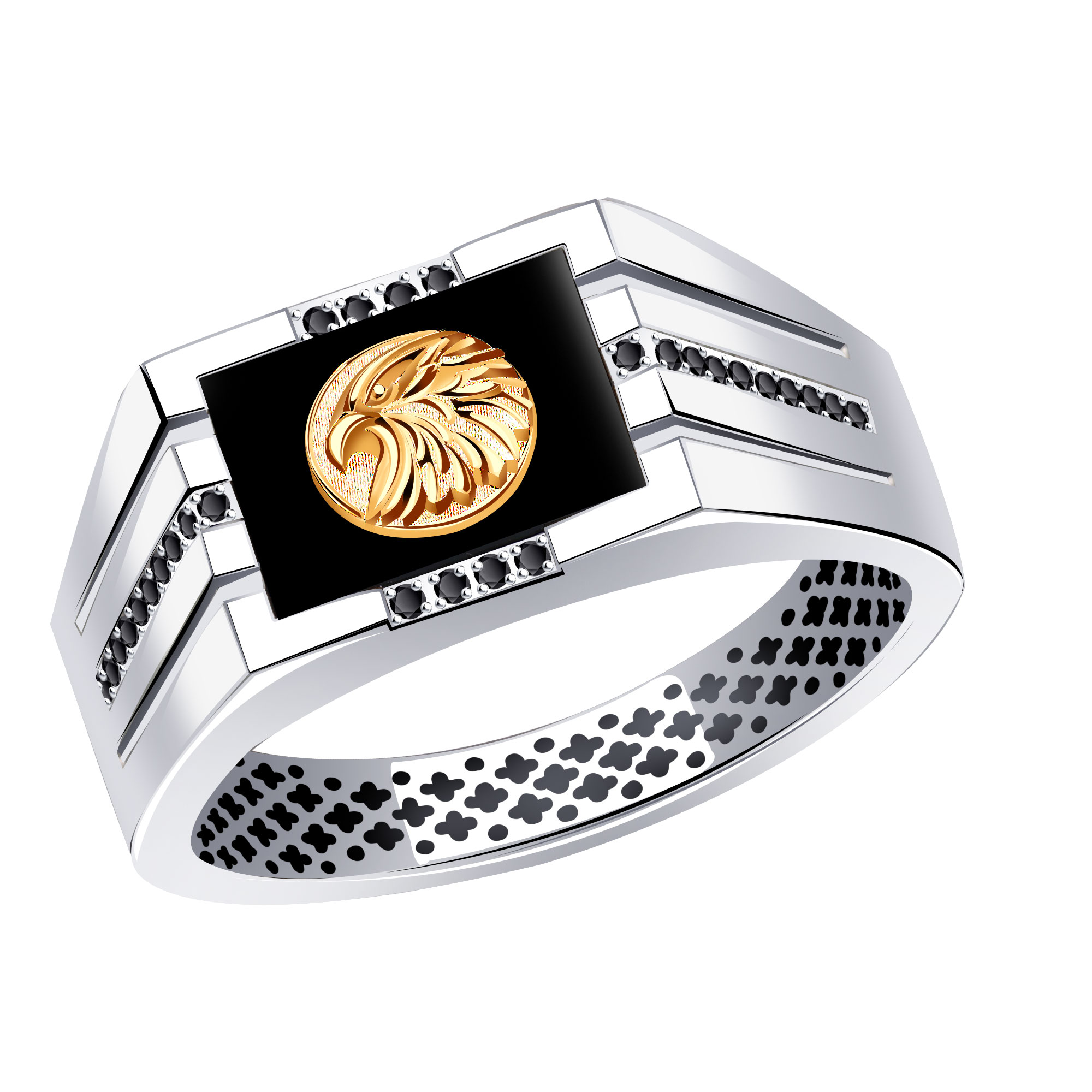 [NAME] => Кольцо из белого золота с ониксом и фианитами