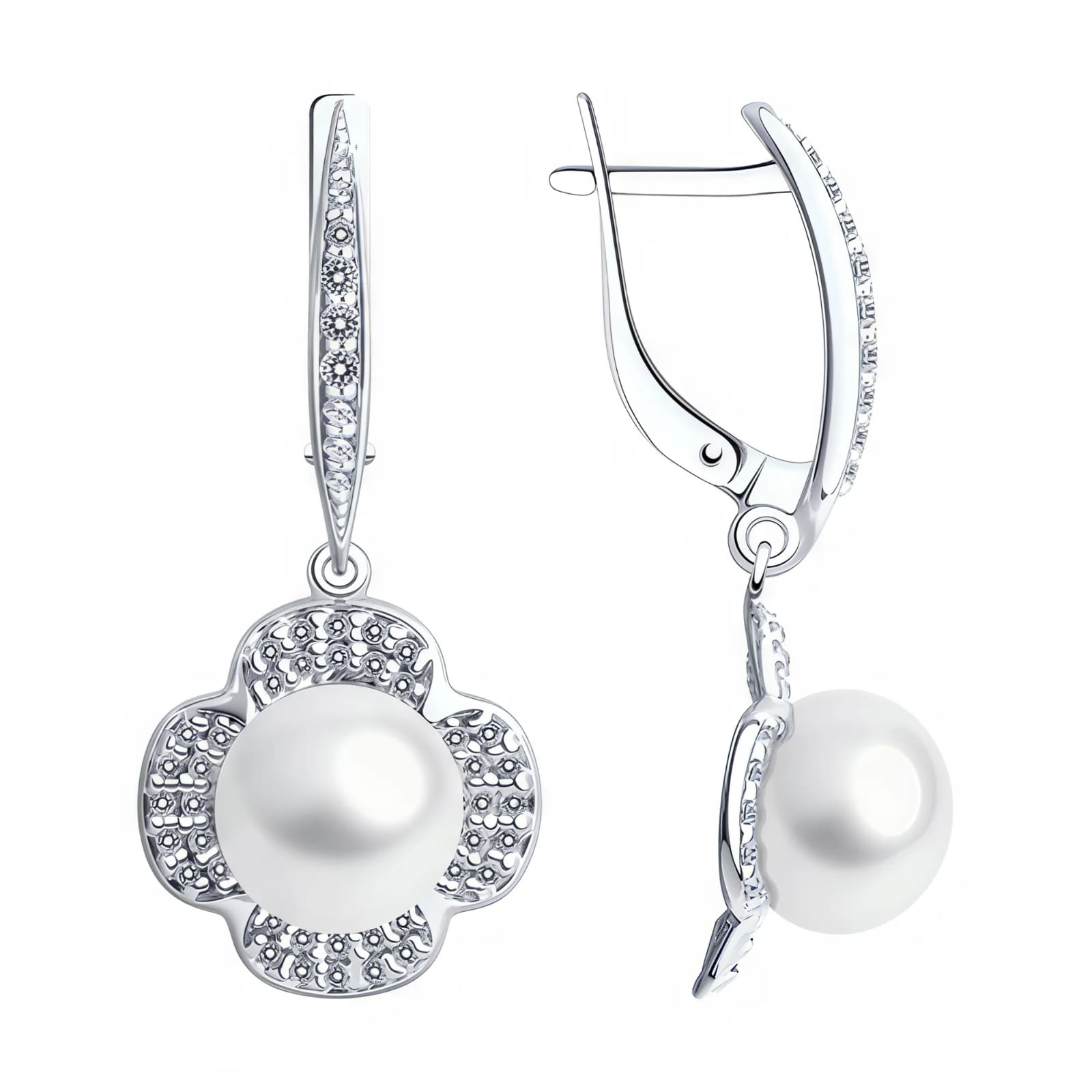 Серьги из серебра с жемчугом и фианитами