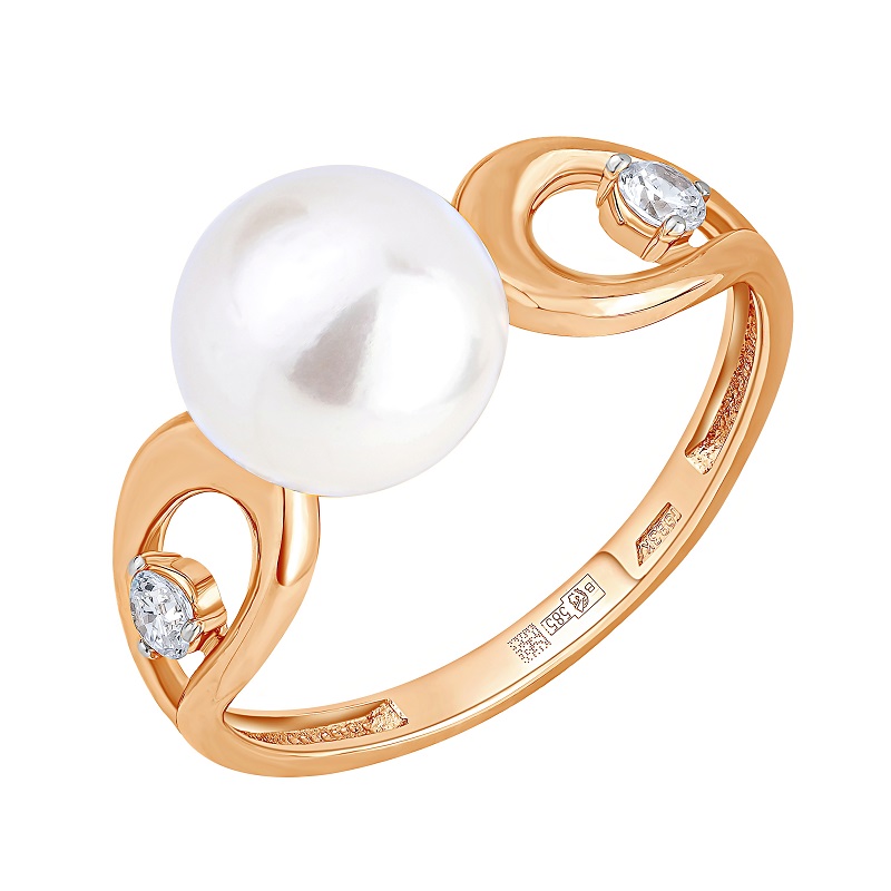 [NAME] => Кольцо из красного золота с жемчугом и фианитами