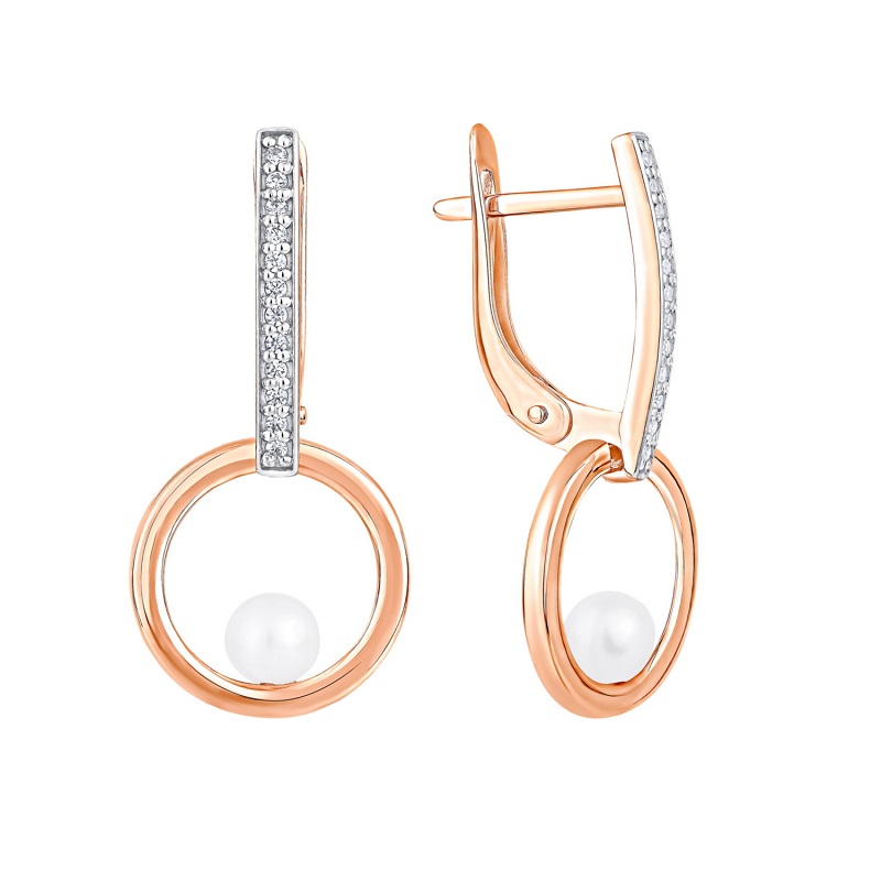 [NAME] => Серьги из красного золота с жемчугом и фианитами