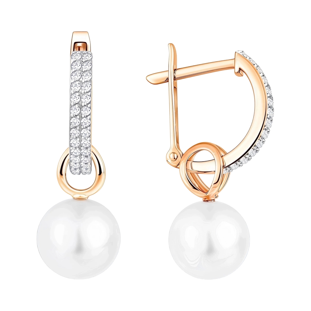 [NAME] => Серьги из красного золота с жемчугом и фианитами