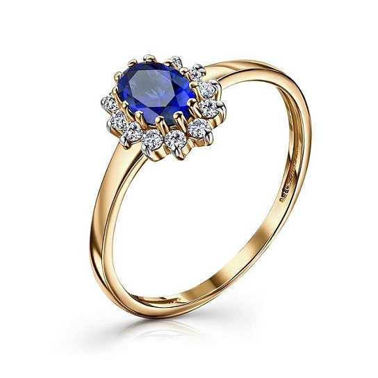 Кольцо из красного золота с сапфиром и брилиантами 153571