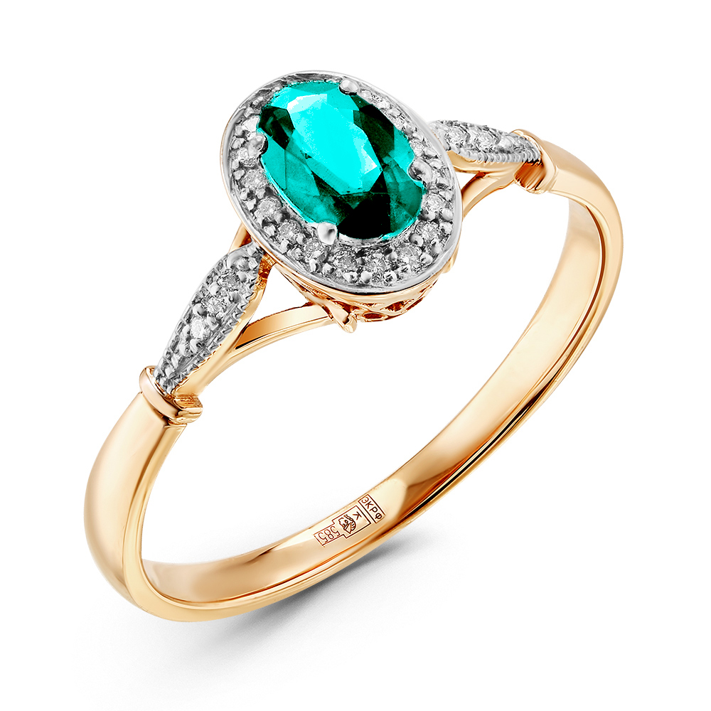 Кольцо из красного золота с изумрудом и бриллиантами 153663