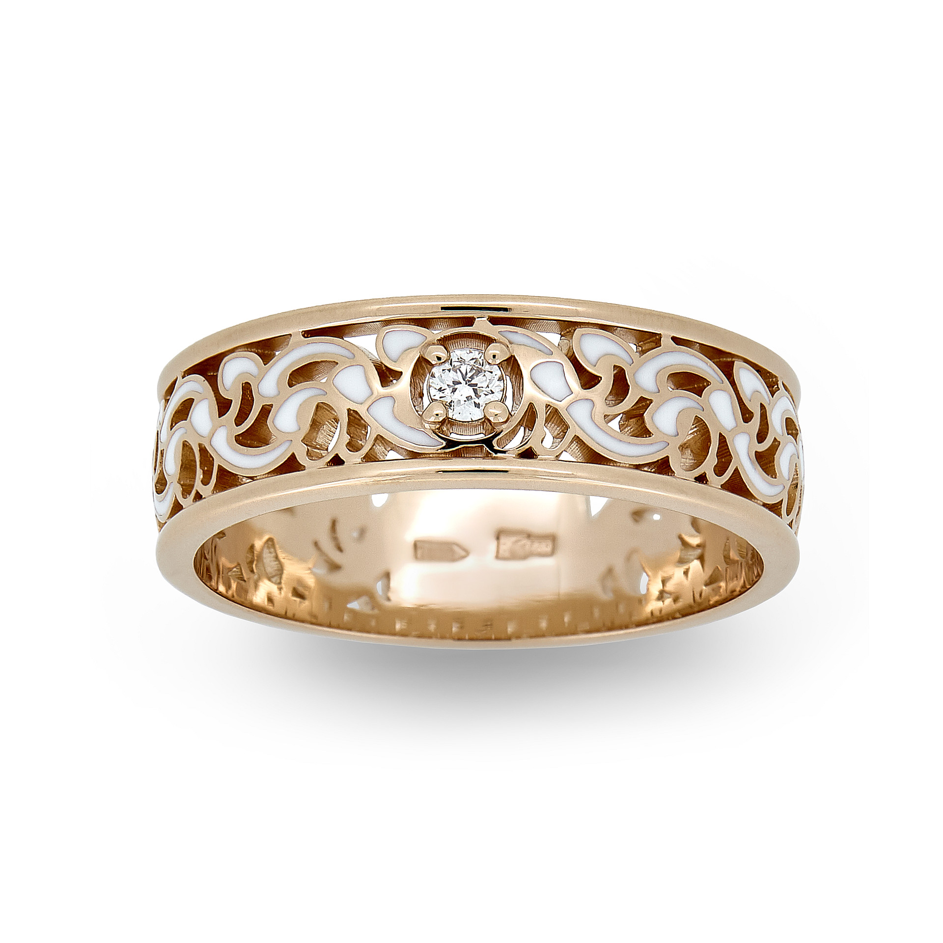 Обручальное кольцо из красного золота с бриллиантом и эмалью