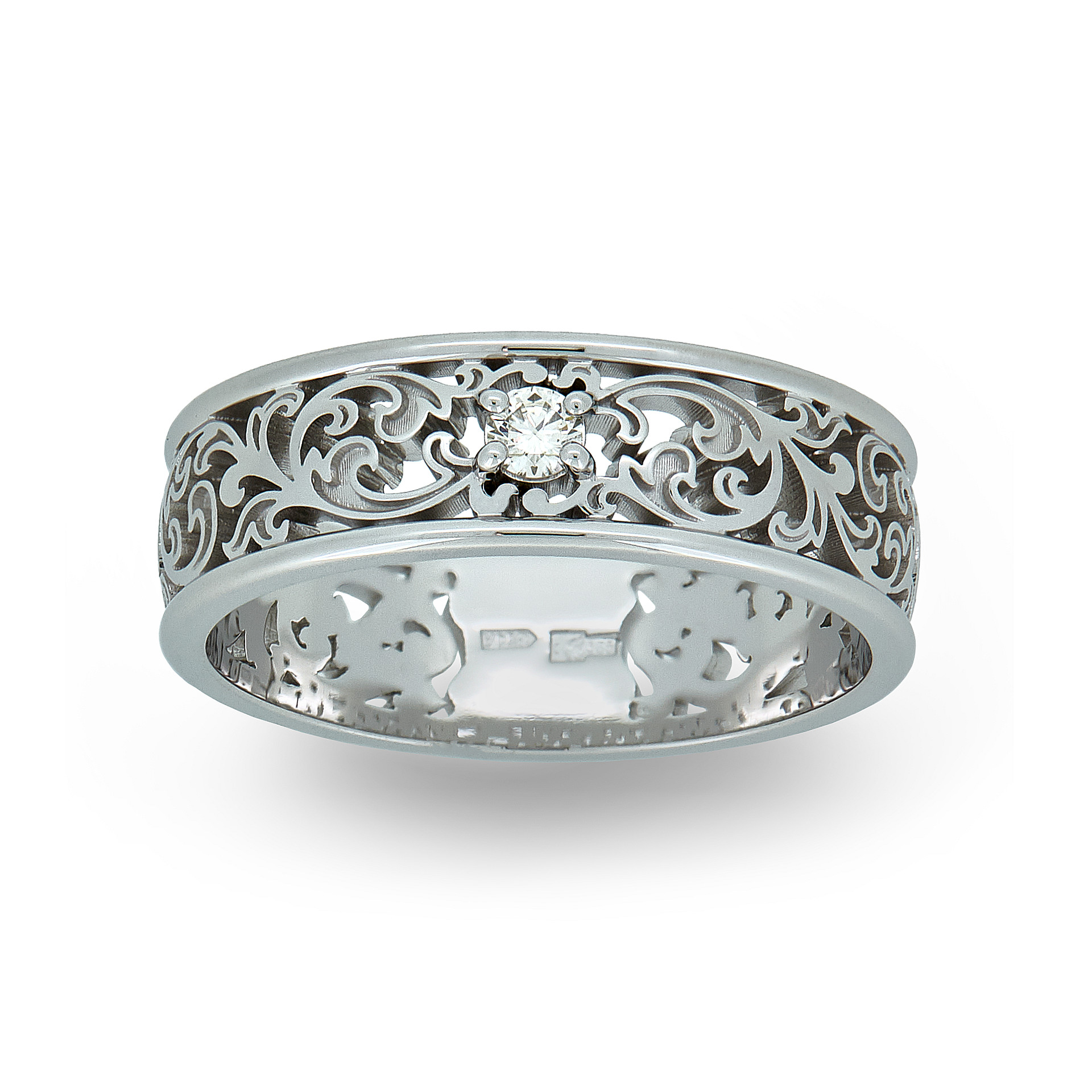 Обручальное кольцо из белого золота с бриллиантом 154287