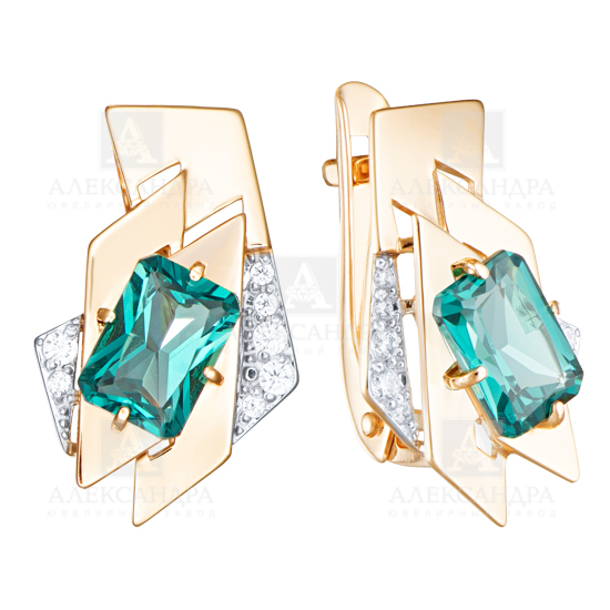 Серьги из красного золота с лондон топазом и фианитами 154326