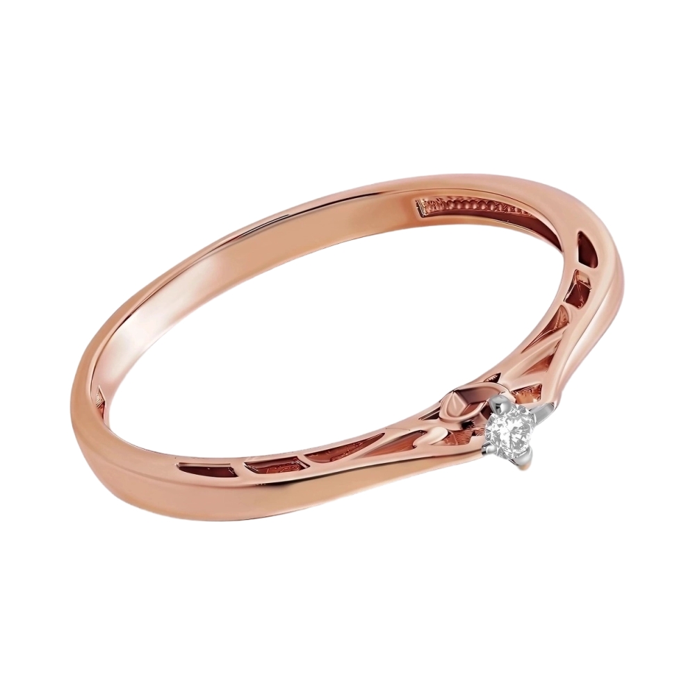 Кольцо помолвочное из красного золота с бриллиантом