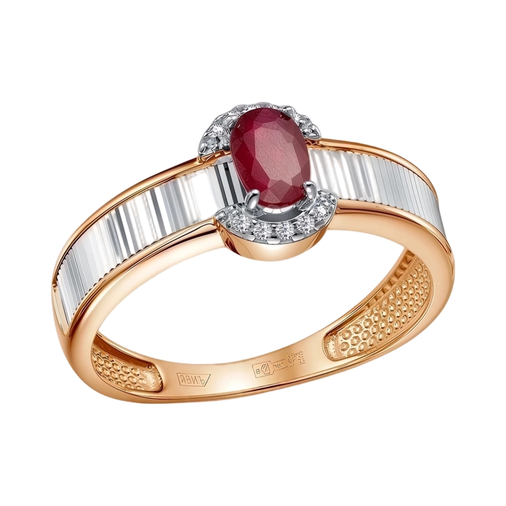 Кольцо из красного золота с рубином и бриллиантами 155433
