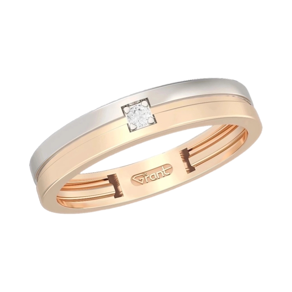 Обручальное кольцо из комбинированного золота с бриллиантом
