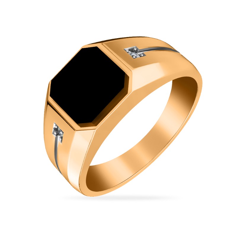 Мужская печатка из красного золота с ониксом и фианитами