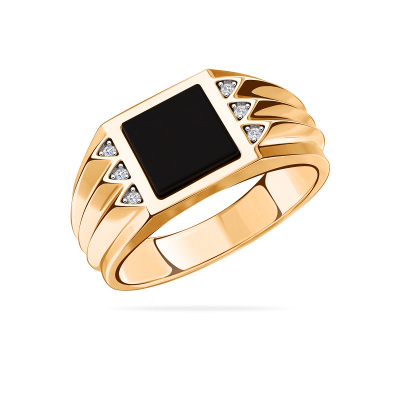 Печатка мужская из красного золота с ониксом и фианитами 155945